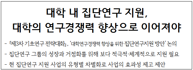 ✓ 집단연구의 성장 : 대학의 연구경쟁력 향상으로 이어져야