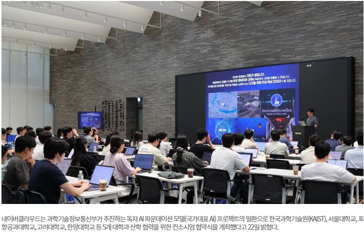 네이버클라우드는 과학기술정보통신부가 추진하는 독자 AI 파운데이션 모델(국가대표 AI) 프로젝트의 일환으로 한국과학기술원(KAIST), 서울대학교, 포항공과대학교, 고려대학교, 한양대학교 등 5개 대학과 산학 협력을 위한 컨소시엄 협약식을 개최했다고 22일 밝혔다.