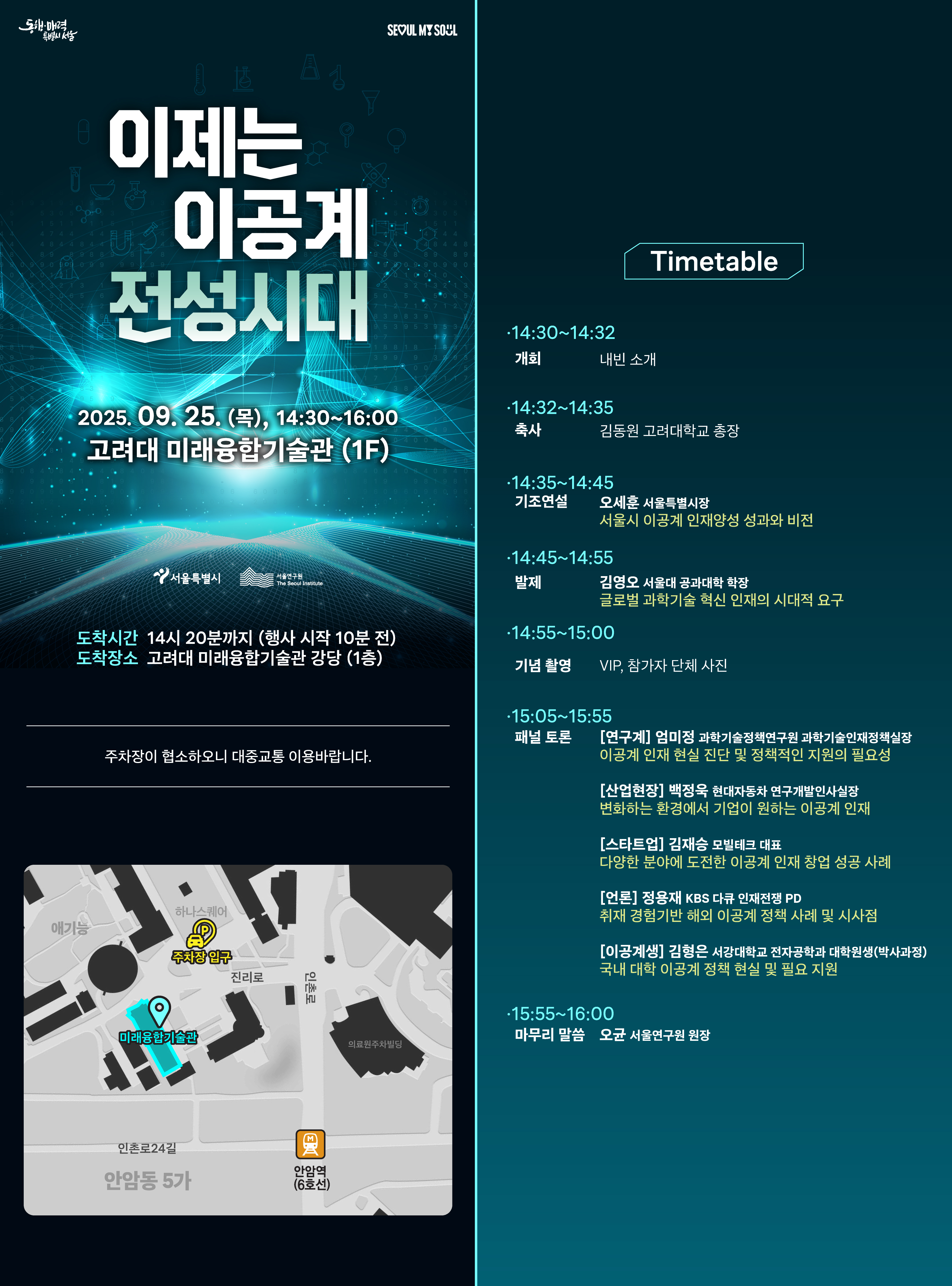 ▷ 내 용 : 서울시 이공계 인재양성 성과 및 비전 발표, 패널토론 등