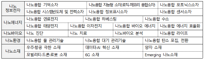- 12대 국가전략기술분야* 및 응용분야**등 미래 나노·소재 기술트렌드에 부합하는 창의적·도전적 연구 지원
