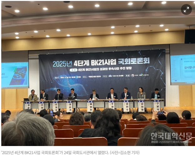 24일 국회도서관에서 열린 ‘2025년 4단계 BK21사업 국회토론회’에서는 교육 현장 전문가와 교육부 관계자들이 모여 사업 성과를 점검하고 후속 과제를 논의하는 자리가 마련됐다.