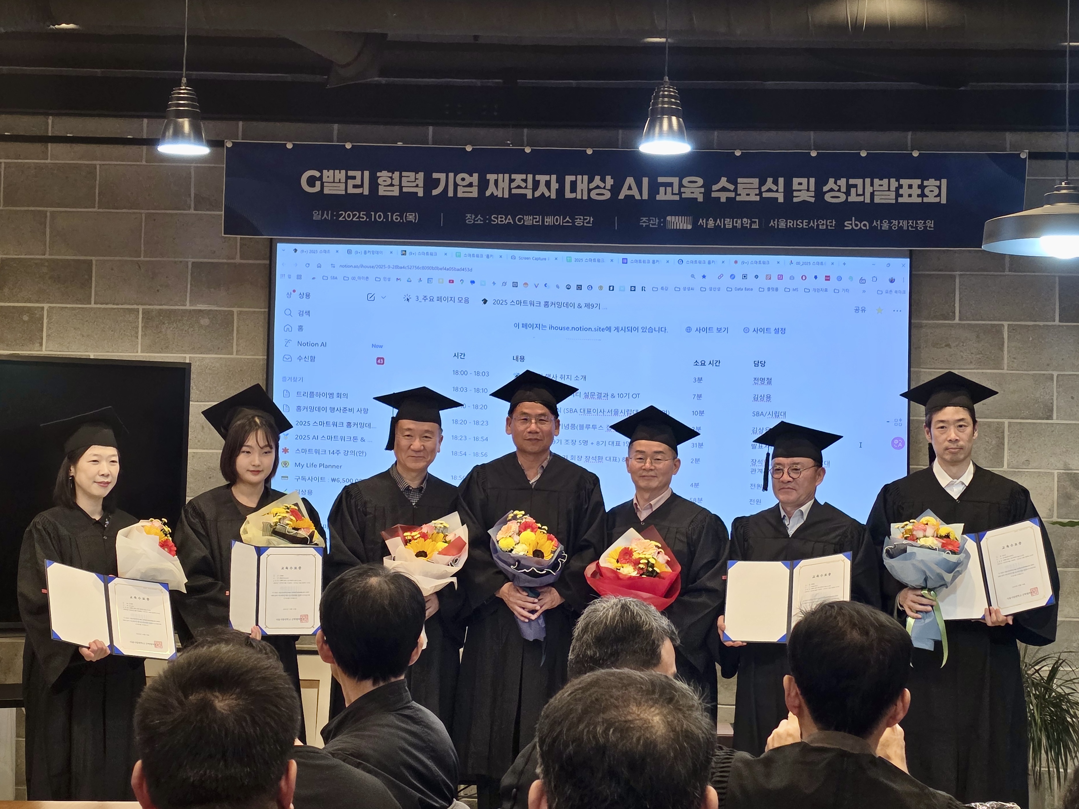 서울시립대학교(총장 원용걸)은 2025년 10월 16일(목), 서울경제진흥원(SBA) 지자체네트워크팀 가산 거점에서 「RISE-G밸리 AI 재직자 교육프로그램」 수료식을 성황리에 개최했다.