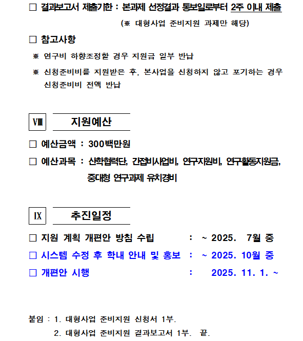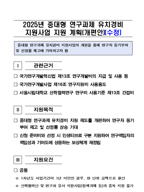 [교내지원사업] 2025년 중대형 연구과제 유치경비 지원사업(개편안) 지원 계획 안내드립니다. (*2025.11.01부터 시행)