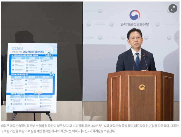 과학기술정보통신부(부총리 겸 장관 배경훈)는 이날 2026년을 'AI·과학기술 중심 국가 대도약의 원년'으로 규정하고, 독자 AI 모델 개발부터 국가 난제 해결형 K-문샷 프로젝트, 지역 혁신까지 전방위 기술전환 정책을 발표했다.