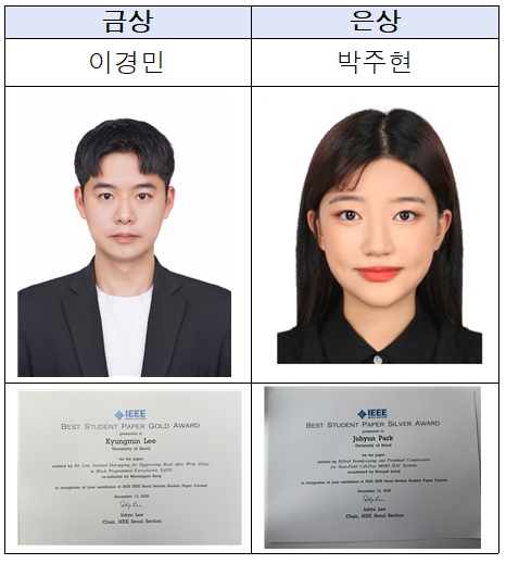 1. 이경민 (금상, 지도교수 강명곤) - “Bit Line Assisted Detrapping for Suppressing Read After Write Delay in Block Programmed Ferroelectric NAND”