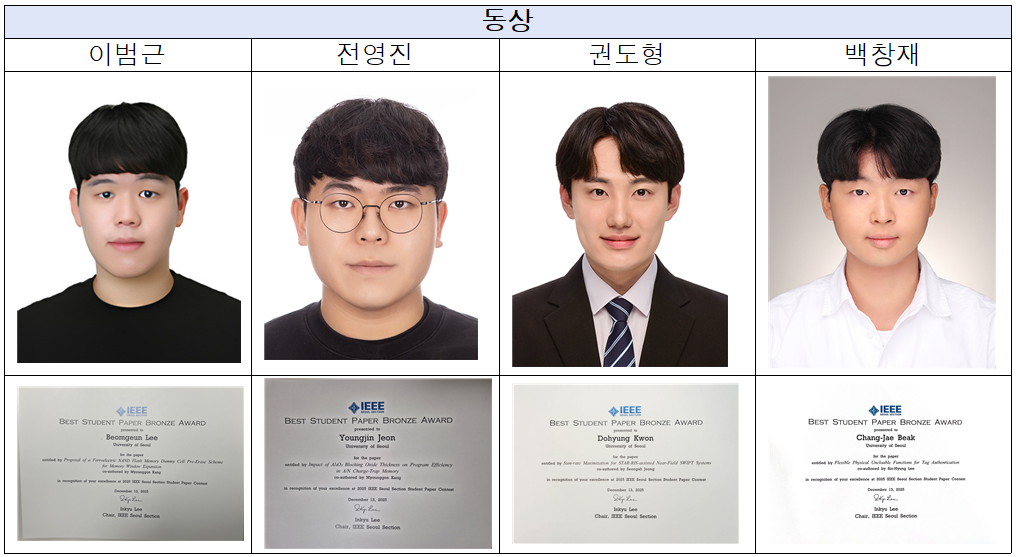 3. 이범근 (동상, 지도교수 강명곤) - “Proposal of a Ferroelectric NAND Flash Memory Dummy Cell Pre-Erase Scheme for Memory Window Expansion”