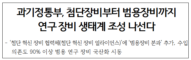 이에 과기정통부는 고가의 첨단장비뿐만 아니라, 과학기술 연구 및 연구 장비 생태계의 기초가 되는 1억 원 이하의 범용장비 국산화가 시급하다고 판단하여, 이를 체계적으로 지원하기 위해 산·학·연 전문가들이 참여하는 전담 분과를 신설했다.