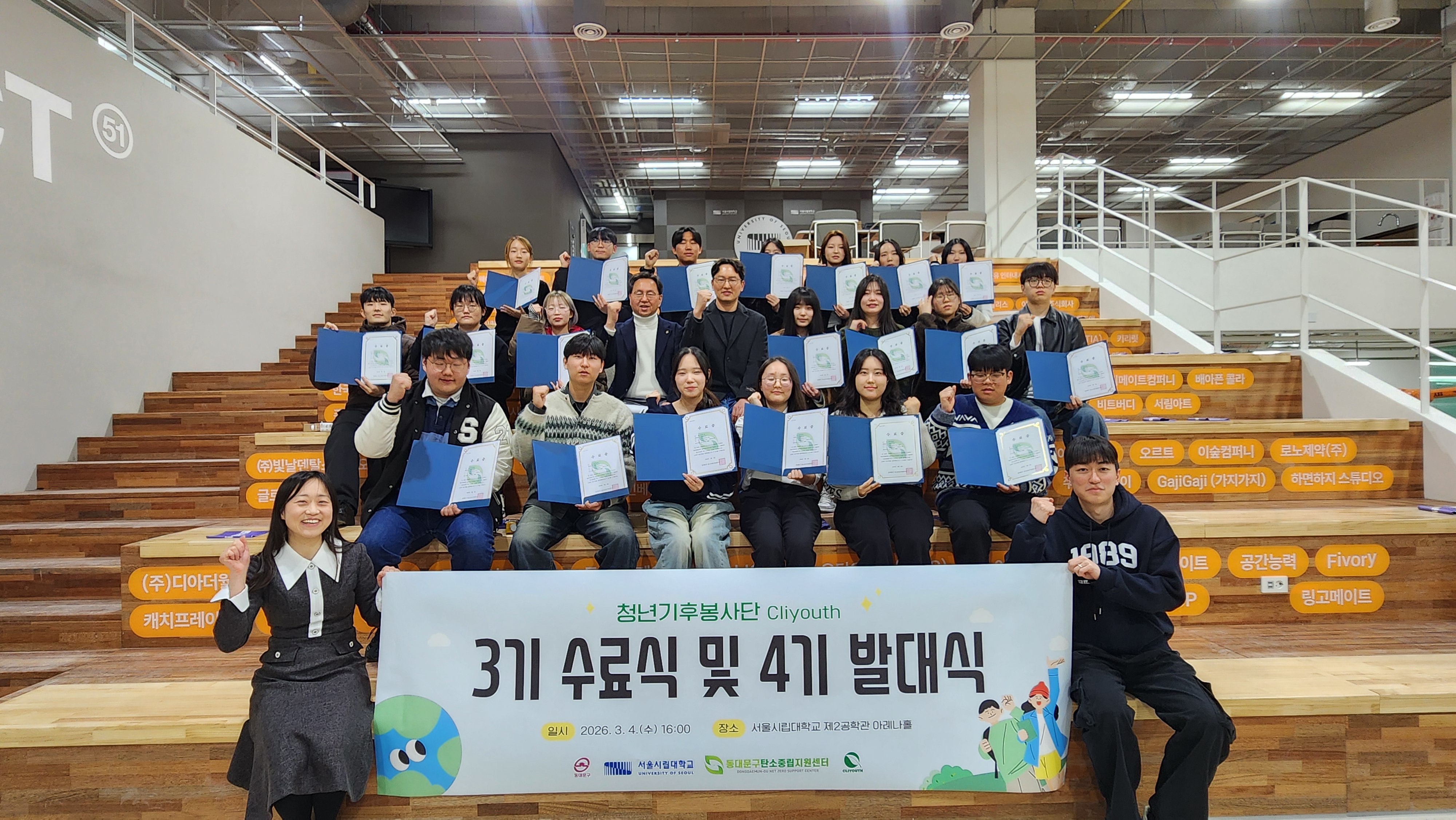 서울시립대학교(총장 원용걸)는 동대문구 탄소중립 지원센터 주관으로 청년기후봉사단 클라이유스(Cliyouth) 3기 수료식 및 4기 발대식을 개최하였다고 밝혔다.