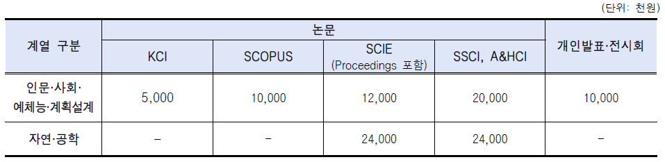- 제 1저자, 교신저자 (단위 : 천원/건)